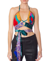 LAB- Silky wrap top made from vintage designer scarves. Finished with silk scarves we find in the vintage sphere. The designer scarves are found in the vintage sphere and are mainly from couture houses as; Hermes, Celine, YSL, Gucci, Balenciaga