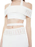 Features sheer mesh off-shoulder panels for subtle transparency and modern visual interest