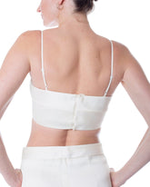 Snap closures at the back with banded detail along the neckline. Thin adjustable straps.