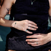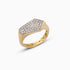 Designed in a unique pentagon shape, this 14K gold ring is adorned with pavé diamonds for a touch of sparkle. Its elegant design makes it a must-have for every hand stack, perfect for adding sophistication and shine to any outfit.