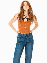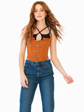 HAN WEN Stretchy X-Bralette Layered Corset Top in Brick Red