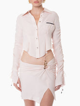 • Can be worn as a regular dress shirt or a cropped tied-up shirt.