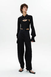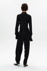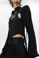HAN WEN STUDIO Silk Flowy Corset Blouse in Black