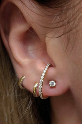 Can never go wrong with the Pave Montaigne Earring. Minimal hoop jackets that come with a pair of 3mm round diamond studs. Item sold as a pair.