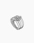 Crafted from 18-karat white gold, this elegant five band ring features mini round cut diamonds in a four-prong setting placed on nine rhombus motifs.