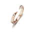 The Primeval Ring is a sleek rose gold open ring with tapered ends featuring a diamond detail on both ends.