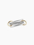 The Petunia SP Ring expertly crafted with a central band of u-pavé gray or black diamonds, framed by two equal-gauged bands of .925 sterling silver or 18k yellow gold. All bands are linked by orbiting 18k gold connectors, resulting in an elegant and lightweight complement to any ensemble. Each Tigris is artfully handmade in Los Angeles.