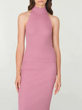 This chic mock neck halter top adds sophistication to any outfit. The halter neck tastefully displays your shoulders, enhancing any ensemble with elegance. Crafted from our custom blended, silky-soft ribbed fabric, this top offers exceptional durability and breathability without compromising comfort. Its design effortlessly contours your curves while giving you relaxed comfort throughout your day. Versatile enough to elevate a pair of jeans or wear with our matching skirt for a blissful evening out.