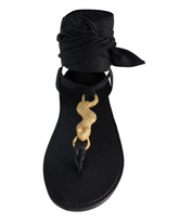 • Gold-plated, hand-carved snake at T-strap