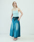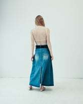 This wide-leg denim skirt redefines casual cool with its sculptural silhouette and standout waist detailing. It comes with two detachable belts—each designed to wrap around the waist and hips for a layered, utilitarian-inspired look. Crafted from washed denim with soft fading and a natural drape, the skirt features a center slit in both the front and back, adding movement and modern edge. A statement piece with endless styling potential.
