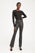 Our coveted Super Flare Leggings will quickly become an essential, and fun, part of your wardrobe. Made from our buttery soft French stretch-leather, these pants feel like a second-skin with their extreme breathability technology, making them wearable for all seasons. These pants feature our figure sculpting waistband for an easy pull-on fit, and are designed with princess seams down the front and back for a slimming, tailored look that flares out from the knee to elongate the legs.