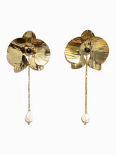 Inspired by the orchid flower, the deviendra earrings are forged from hand-cut, 24k gold plated textured brass sheet featuring a singular freshwater pearl drop. The posts are hypoallergenic steel. This unique and one of a kind statement earring will be a great addition to your wardrobe. These earrings are handmade in Kenya by skilled artisans.